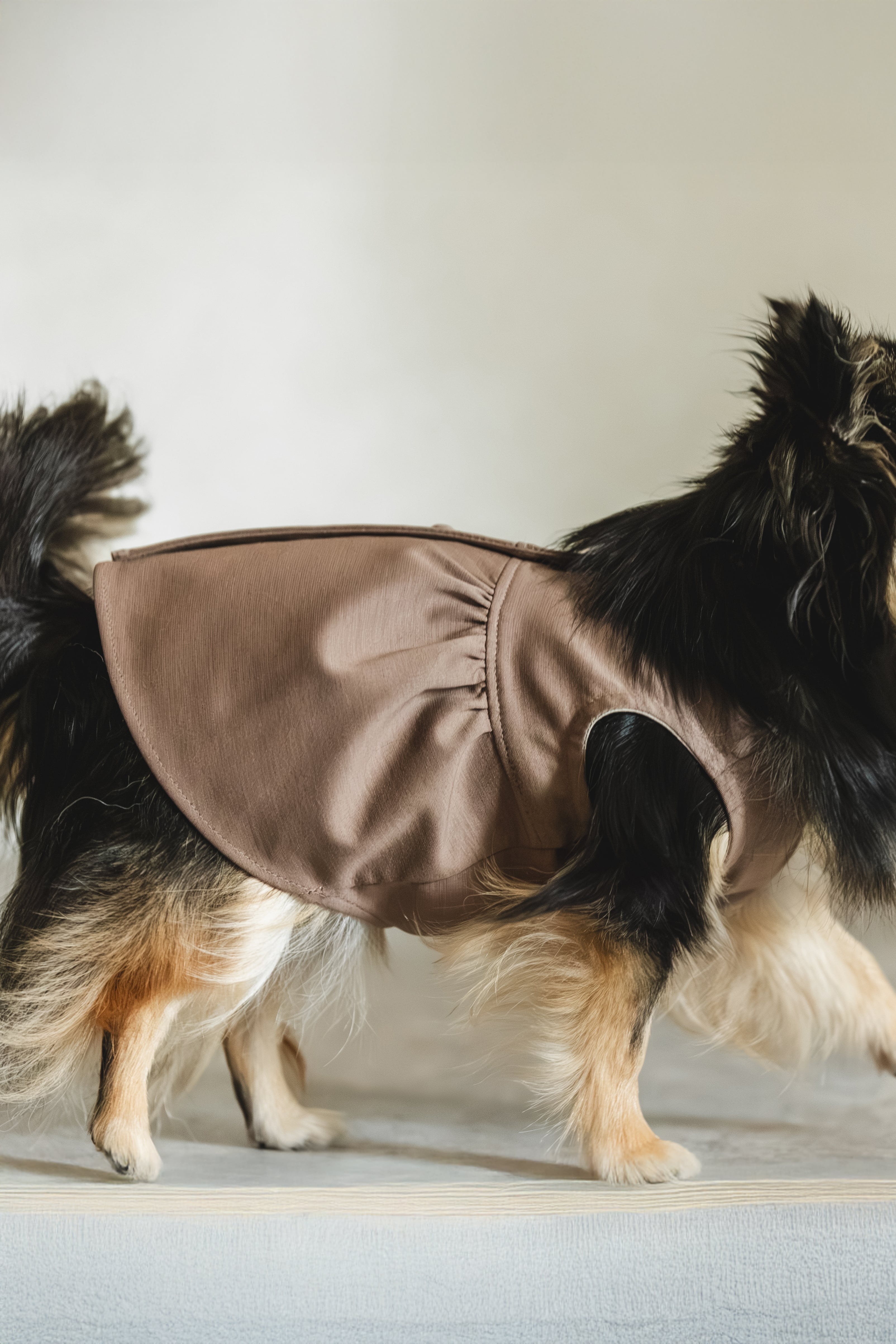 背側がすっと開くこの設計は、チワワの体に無理なく沿うためのもの。