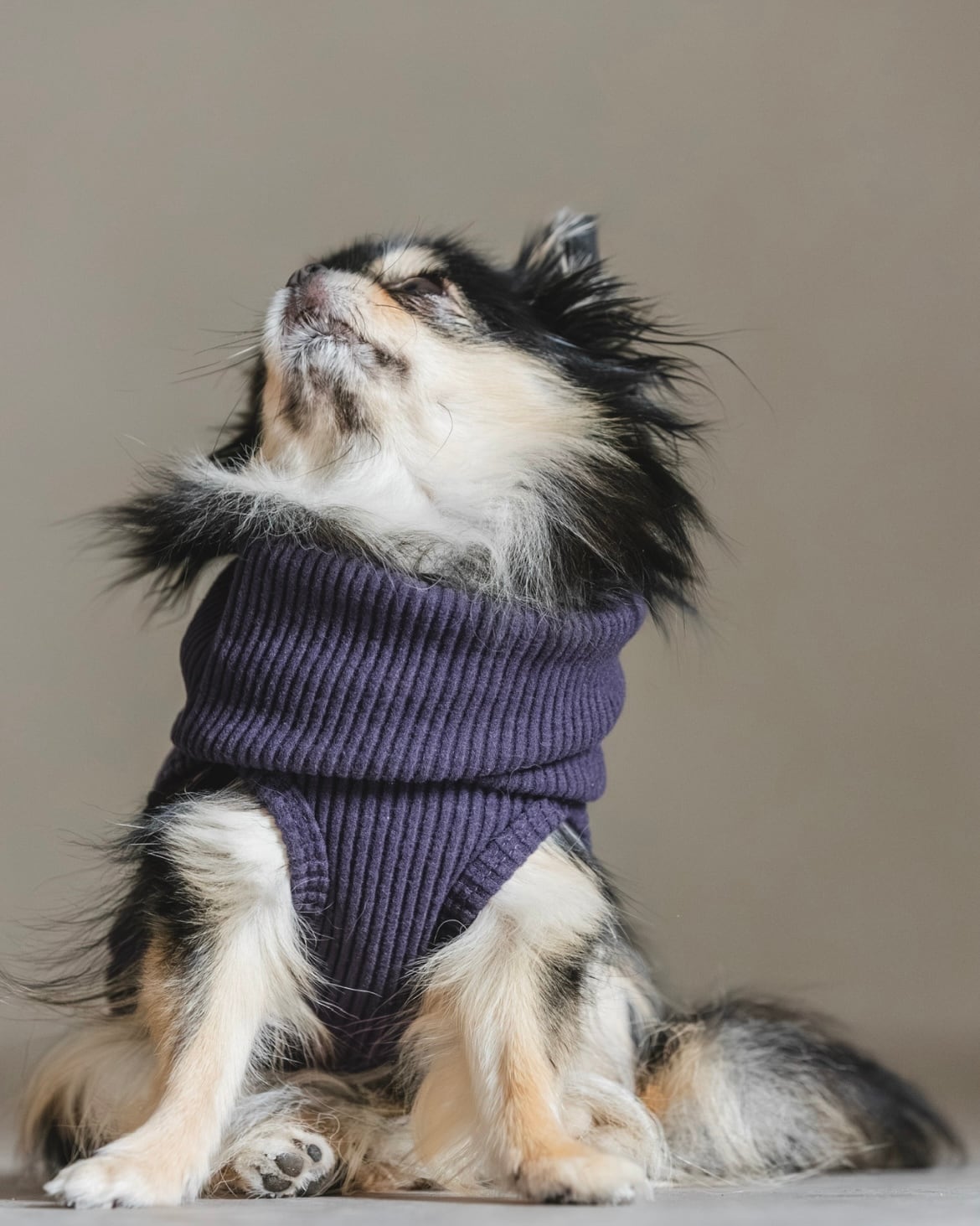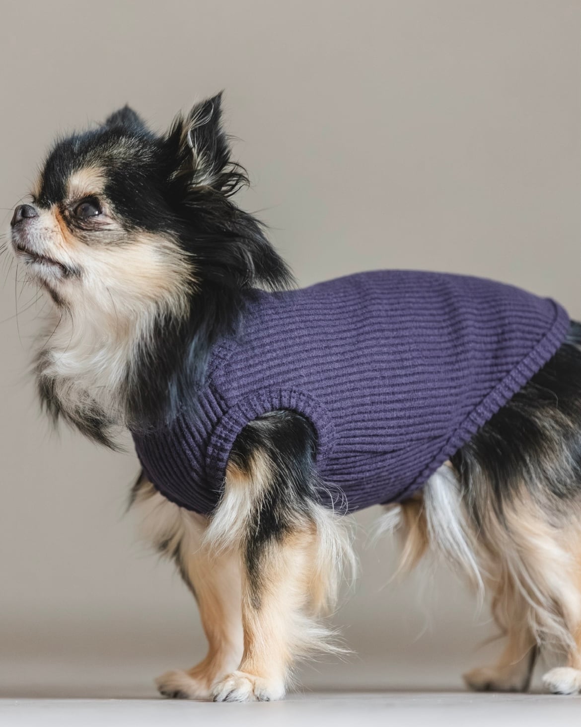 チワワの小さな体に無理なく沿い、着せやすさと美しさを両立しました。